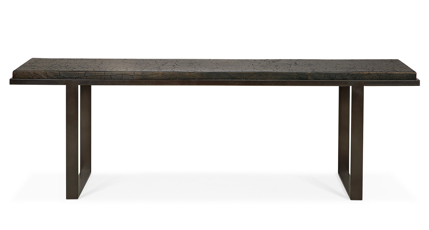 Hluboký povrch konzoly Stability, který se opírá o některé z nejstarších uměleckých technik předků, je ručně tvarován zručnými řemeslníky. Přírodní minerální prášky a barevné pigmenty se mísí a vytvářejí jedinečný povrch konzole. Tloušťka topu vytváří odhalující kontrast se vzdušnou základnou. Jednoduché linie předvádějí čistou krásu dobře zpracovaného kovu.