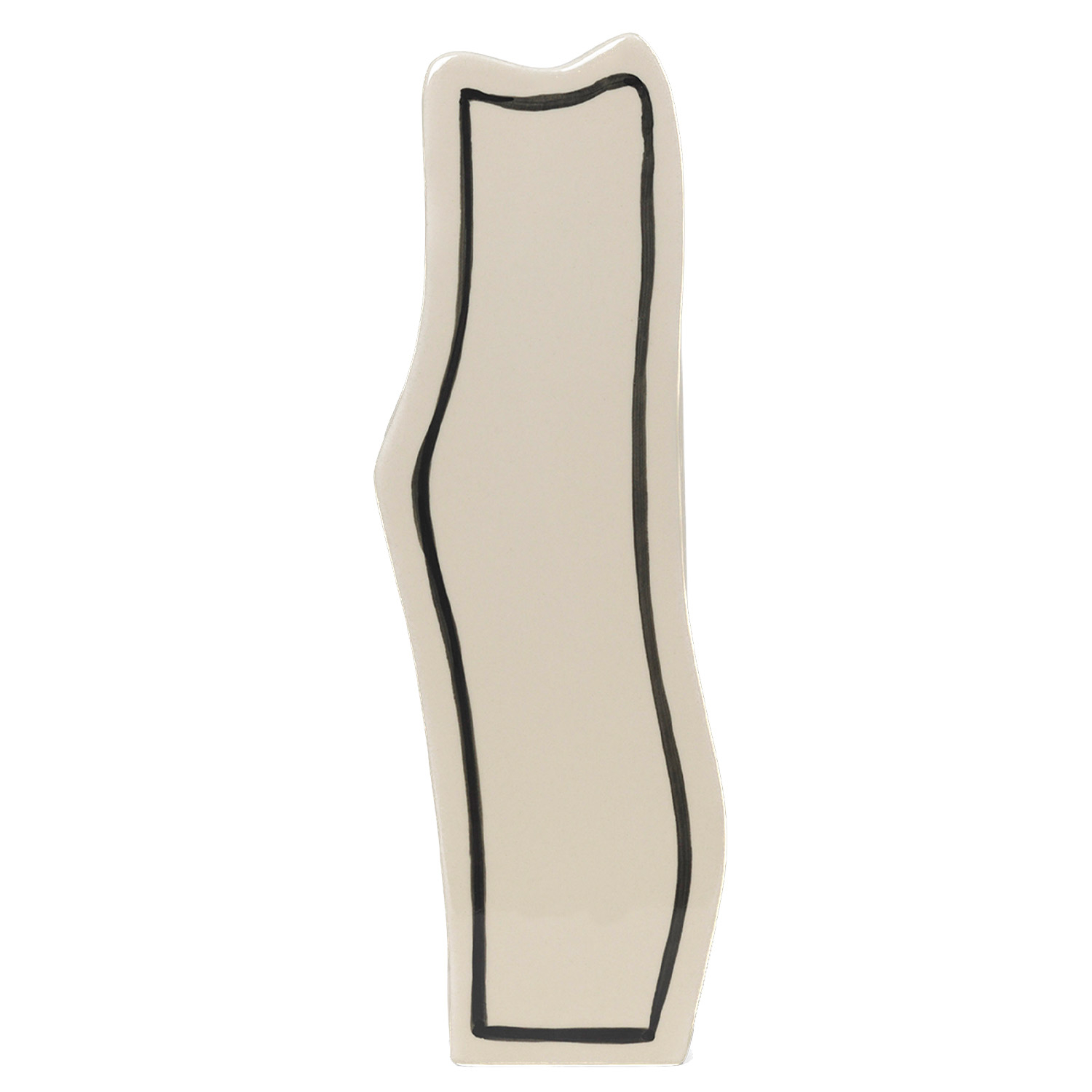 Paste Vase si hraje s 2D i 3D siluetami a vytváří tak působivý doplněk pro váš domov. Skládající se ze dvou identických plochých keramických desek připojených k válcové váze, výrazný design vytváří dojem kopírování a vkládání, 3D efekt. Odsazené černé obrysy jsou ručně malované a dodávají váze hravý výraz. Naplňte pastovou vázu svými oblíbenými květinami a umístěte ji na okenní parapet, na jídelní stůl nebo polici v obývacím pokoji, aby váš prostor získal výrazný vzhled.