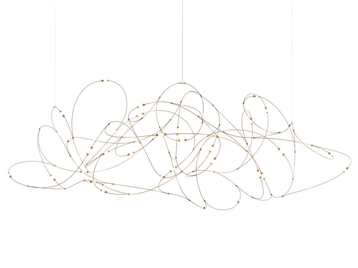 Závěsná svítidla Flock of Light od Studia Toer, které je navrhlo pro MOOOI se během dne mění z lehkého a vzdušného uměleckého designu na večerní roj blýskavých světel. Celý umělecký kousek je složený z mosazných kelímků, skla, bronzových drátků a poloprůhledných polykarbonátových difuzorů. Skvěle tak přináší jasnou, teplou až poetickou záři do vašeho interiéru.