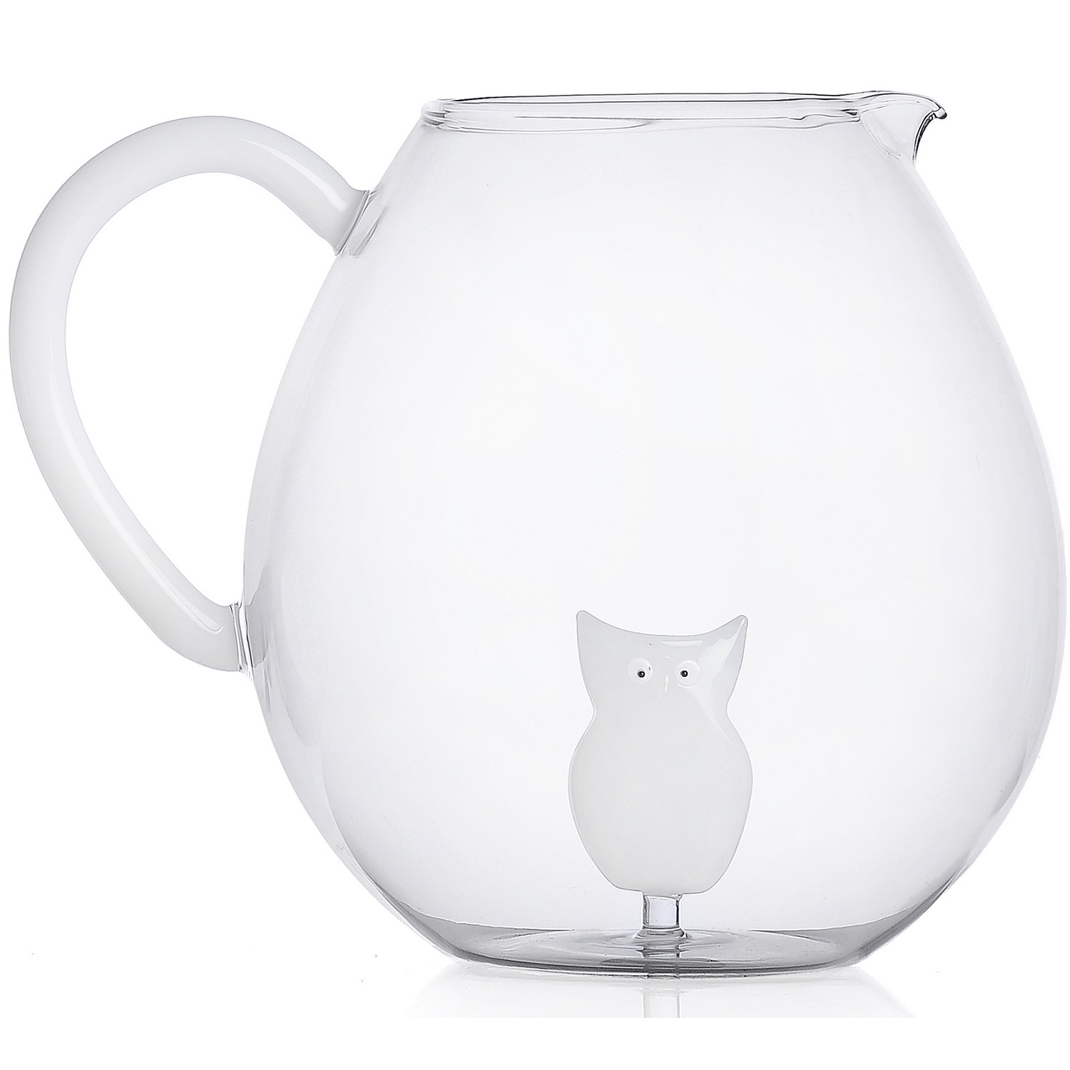 Designové džbány Animal Farm Owl Jug od Ichendorf Milano jsou z kolekce, která vznikla před několika lety a je inspirována sny a pohádkami. Tuto přírodní kolekci čirého a barevného skla zdobí ručně vyráběné malé postavičky zvířat, které vtipně doplňují skleněné designy známé umělkyně a designérky Alessandry Baldereschi. Ta díky svojí představivosti vytvořila nádhernou a hravou kolekci imaginární a kouzelné krajiny, která vám vytvoří neopakovatelnou atmosféru nejen vašeho stolu, ale i domova.