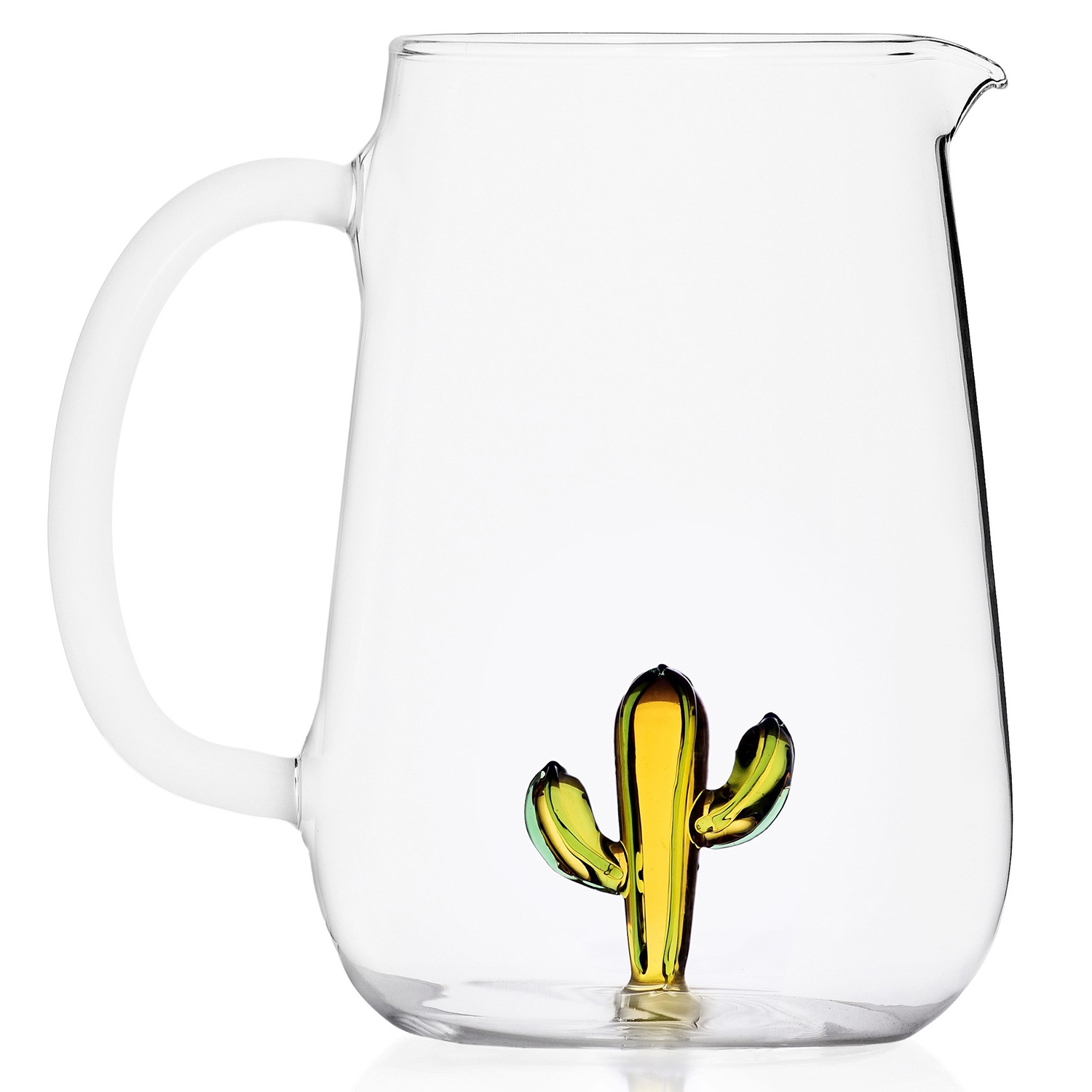 Designový džbán Desert Plants Green Cactus od Ichendorf Milano, navržený talentovanou designérkou Alessandrou Baldereschi. vyniká svým jedinečným a hravým designem, který přináší do vašeho domova atmosféru pouště. Žlutý kaktus uvnitř džbánu dodává nádech přírody a originality. Vyrobený je z kvalitního skla. Džbán je nejen esteticky atraktivní, ale také praktický a odolný. Perfektní pro podávání nápojů při jakékoliv příležitosti, tento džbán se stane výrazným prvkem vašeho stolování.