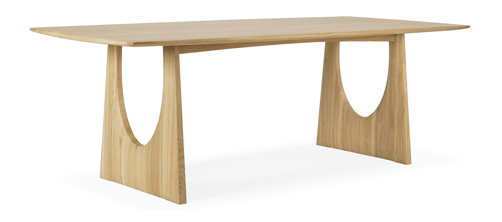 Díky obohaceným tvarům a nečekaným detailům je jídelní stůl Oak Geometric Dining Table od Ethnicraft výrazným designem, který se hodí nejen do jídelny, ale i do pracovního prostoru. Luxus přichází s jeho délkou, kterou kompenzují změkčené hrany a přirozené linie. Vyrobený je z masivního dubového dřeva, které je k dostání ve dvou barevných variantách.