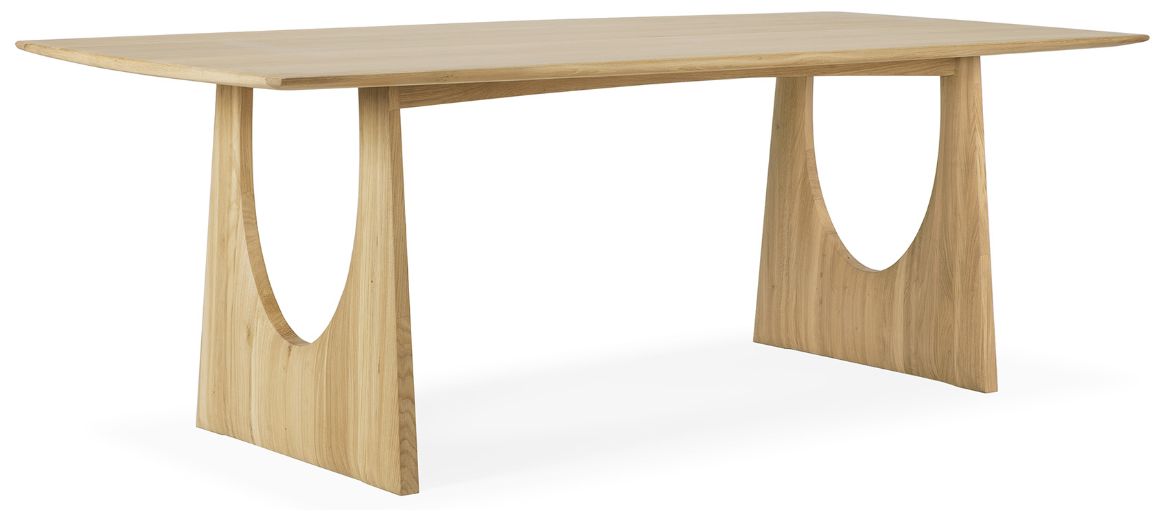 Díky obohaceným tvarům a nečekaným detailům je jídelní stůl Oak Geometric Dining Table od Ethnicraft výrazným designem, který se hodí nejen do jídelny, ale i do pracovního prostoru. Luxus přichází s jeho délkou, kterou kompenzují změkčené hrany a přirozené linie. Vyrobený je z masivního dubového dřeva, které je k dostání ve dvou barevných variantách.